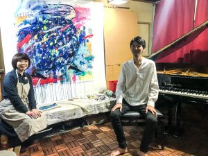 約2時間、すべて即興で、林ゆいかさんのライブ・ペインティングとのコラボでした。