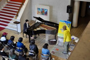 僕には音楽という表現手段があり、妻には美術という手段があります。だから自分の内側にある「わたしのせかい」をいつでも表現できます。人によっては、それが言葉だったり、写真だったり、歌だったり。でもその手段がなくて、いや、あっても、様々な理由で、自分を表現できず、抑圧された中で生きているかもしれない。でも、誰にだって表現の自由があり、うまい下手は関係なく、表現していいはず。自分には必要ないと思っている人でも、やってみたら、新しい扉が開けて、清々しい気持ちになるかもしれない。人生が変わるかもしれない。そのきっかけにして欲しいと思い、企画した音楽とアートのイベントでした。