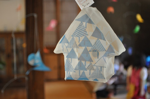 テキスタイル作家・椎原由紀子さんの鳥のオブジェが、空間を舞う。