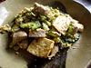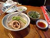 イカとウドの煮物。海ぶどう。キヨビスカにて。 |