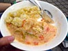 春キャベツの蒸し焼き。大失敗。ポトフ化した。 |