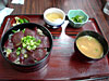 馬力丼。つまり馬肉。熊本駅前にて |
