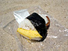 浜辺で食べるポーク玉子おにぎり |