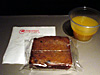 機内食その2。おやつ。ハムサンドとチョコバー.... |