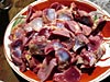 鳥モツも炭火で焼きます。焼く前はちょっとグロいですが |