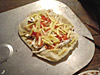 完成!カキとトマトのピザです!成功だね!頑張ってコネた甲斐あったね |