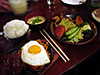 ソロモン厨房にて。最初は豚肉の炒めもの。いい香りです! |