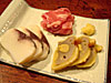元三さんお店「源ZO-NE」にて。火の国セット。馬刺し、からし蓮根、しめ鯖のかまぼこ |