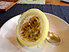山原のcafe「しゃし・くまはーる」にて。とれたてのパッションフルーツ! |