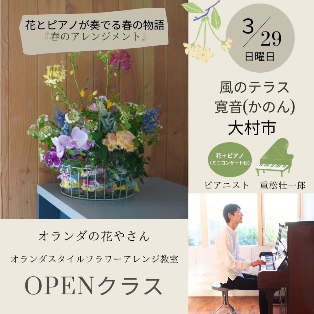 重松壮一郎のピアノ・コンサートと、ヒームストラ舞のオランダスタイル・フラワーアレンジメント教室を一緒に楽しめる春のスペシャル企画。
